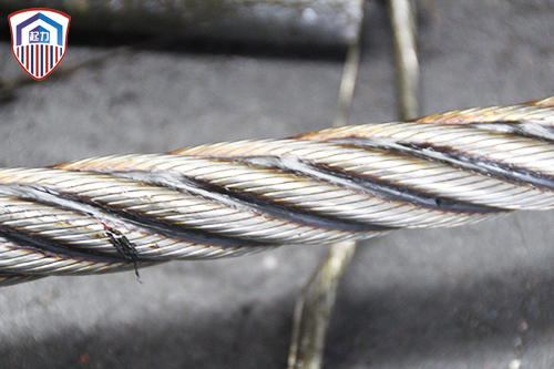 1.表層鋼絲繩直徑磨損超過原直徑40%的報廢
