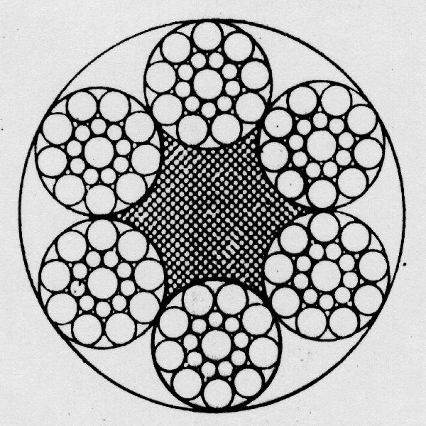 鋼絲繩是將力學(xué)性能和幾何尺寸符合要求的鋼絲按照一定的規(guī)則捻制在一起的螺旋狀鋼絲束,鋼絲繩由鋼絲、繩芯及潤滑脂組成。鋼絲繩是先由多層鋼絲捻成股,再以繩芯為中心,由一定數(shù)量股捻繞成螺旋狀的繩。在物料搬運機械中,供提升、牽引、拉緊和承載之用。鋼絲繩的強度高、自重輕、工作平穩(wěn)、不易驟然整根折斷,工作可靠。
